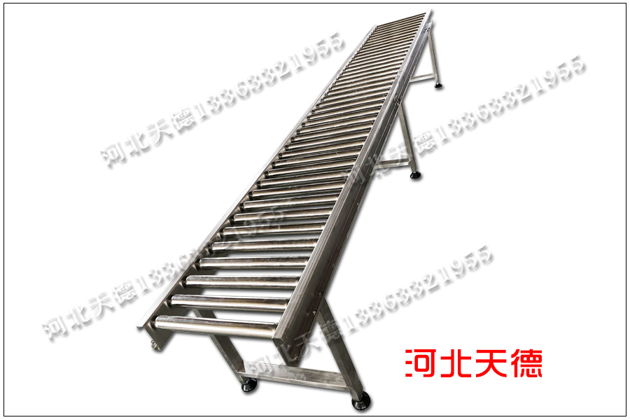 吉林省通化市客戶定制的滾筒輸送機,整體框架采用不銹鋼304材質,輸送機帶面高度為600毫米,滾筒直徑為15公分。