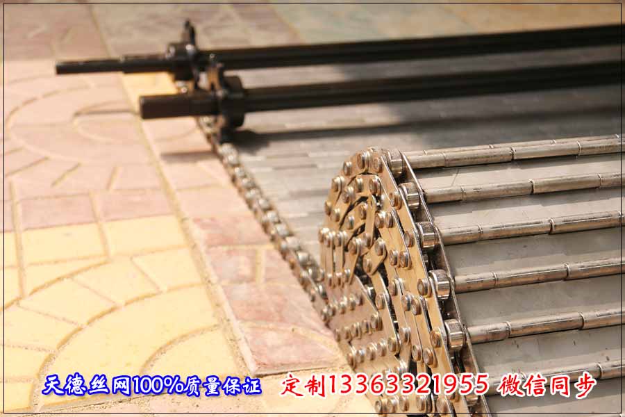 河北天德絲網制品有限公司生產碳片輸送網帶、輸送鏈板、金屬輸送帶:13363321955 www.zhengxing1000.cn