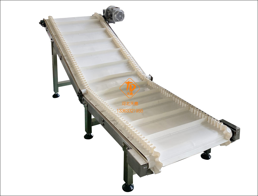 波形擋邊大傾角皮帶式輸送機(jī):為一般用途的散狀物料連續(xù)輸送設(shè)備,具有波狀擋邊和橫隔板的輸送帶。適用于大傾角輸送;