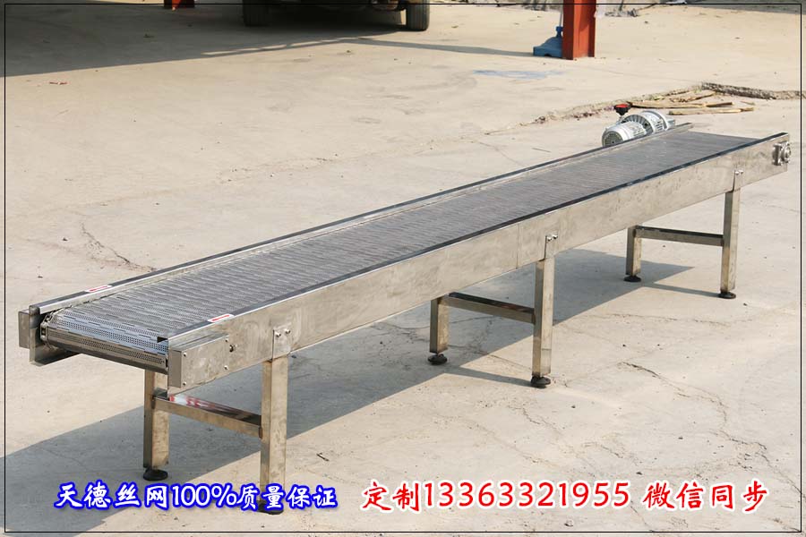 河北天德絲網制品有限公司生產河道垃圾鏈板輸送機、輸送鏈板、不銹鋼輸送機、打孔鏈板輸送帶、金屬輸送帶:13363321955 http://www.zhengxing1000.cn/