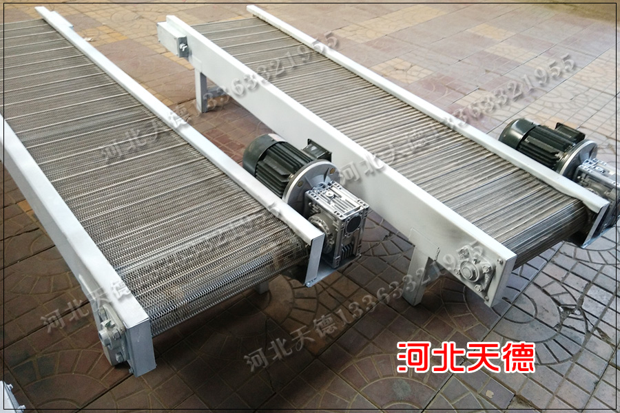河北天德絲網(wǎng)制品有限公司生產(chǎn)不銹鋼輸送機、網(wǎng)帶輸送機、輸送網(wǎng)帶、不銹鋼網(wǎng)帶、輸送鏈板、鏈條網(wǎng)帶、人字網(wǎng)帶等多種規(guī)格的輸送機以及輸送配件。