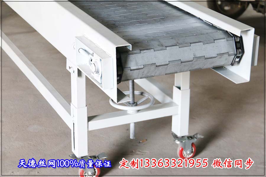 不銹鋼網帶輸送機是在一定的輸送線上連續輸送物料的流水線輸送設備,分為網帶式以及網鏈式兩種。 不銹鋼輸送機可進行水平、傾斜和垂直輸送,也可以與轉彎輸送機組成轉彎流水線,流水線輸送設備一般是固定的。 不銹鋼輸送機輸送能力大,運送物品距離長,應用十分廣泛。 不銹鋼網帶輸送機固定式拉緊裝置和重錘式拉緊裝置,目前常用的拉緊裝置有自動拉緊裝置。 可以與集控裝置連接,實現遠距離操作控制,也可以根據網帶輸送機張力的需要隨便調節起點拉力和運行拉力,及時彌補不銹鋼輸送帶的彈性振蕩,實現帶式輸送機的動態張緊。