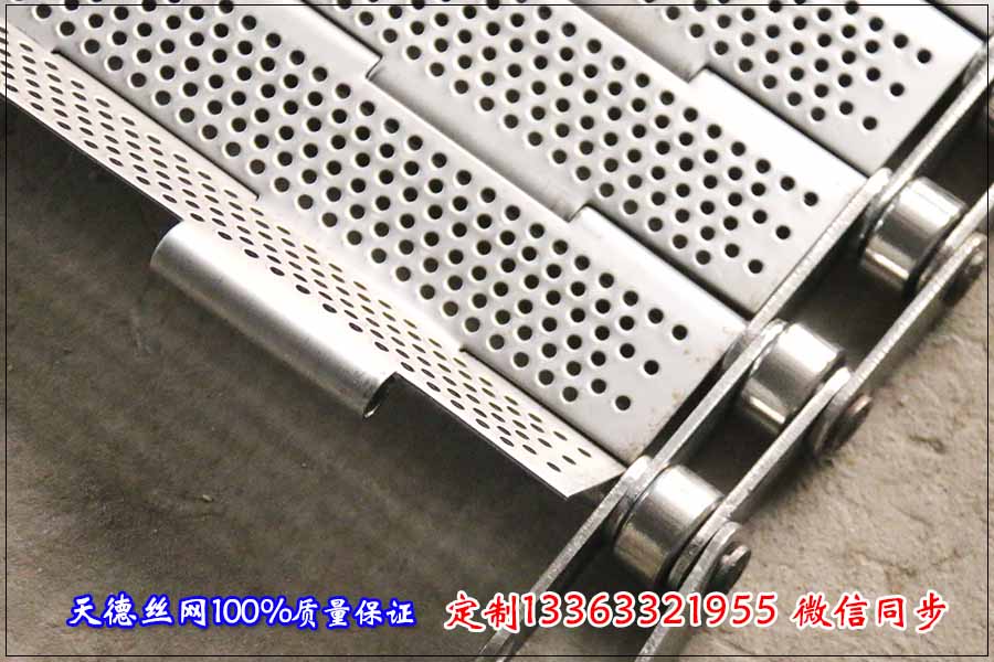 翻板不銹鋼輸送帶板是可以活動的,就是一塊板搭著一塊板的,在往下運轉的時候上面的板就會直起來,這樣上面的一些雜物就會掉落 ,這種也是很方便的,用這種金屬輸送帶的客戶很多,定做翻板金屬輸送帶也是可以在上面沖孔的,基本上差不了太多,大多數還是使用在食品方面比較多,既然是用在食品方面,材質肯定是要用304不銹鋼材質的,我們生產的不銹鋼輸送帶材質方面肯定是能給您保證。