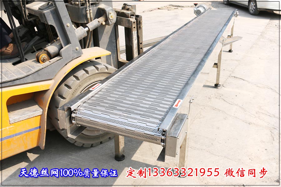 河北天德絲網制品有限公司生產鏈板輸送機、輸送鏈板、轉彎輸送機、轉彎鏈板輸送帶:13363321955 http://www.zhengxing1000.cn/