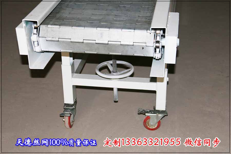 鏈板輸送機(jī)生產(chǎn)基地在安平絲網(wǎng)之鄉(xiāng),河北天德絲網(wǎng)制品有限公司二十多年建廠以來,贏得了上萬家客戶的好評與信賴。 鏈板輸送機(jī)利用固接牽引鏈上鏈板在水平或傾斜方向輸送物料,由驅(qū)動機(jī)構(gòu)、松緊裝置、牽引鏈、板條、電機(jī)減速機(jī)、變頻器、機(jī)架等部分組成。廣泛用在礦山、煤炭、化纖、電力、水利、機(jī)械設(shè)備制造等輸送行業(yè)中。