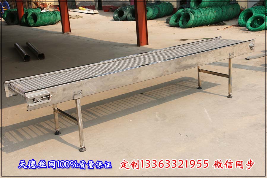 輸送形式有:水平直線輸送、提升爬坡輸送、轉彎輸送等多種輸送形式,根據需要可以在不銹鋼輸送帶的橫截面上焊擋板、鏈條兩側加裝擋板等附件,能滿足各種輸送行業(yè)的要求。 鏈板輸送機以標準頂板鏈為承載面,由馬達減速機做為動力輸送,輸送帶在專用的導軌中運行,根據生產工藝流程的不同鏈板可分為轉彎、直線或提升型,還可實現(xiàn)自動輸送線、分別包裝流水線等。