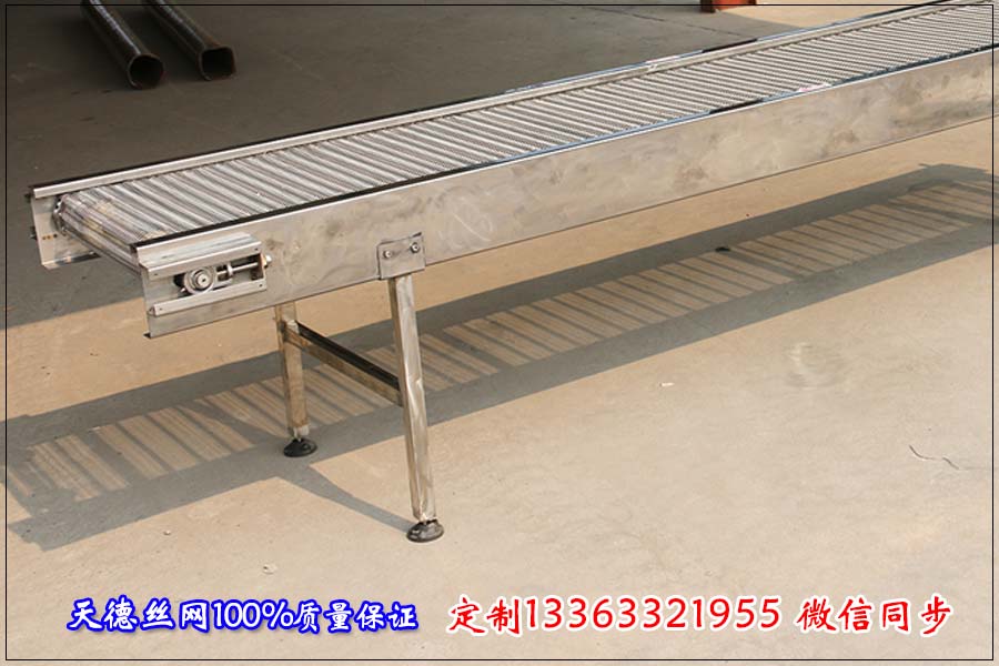 一臺實用的網(wǎng)帶輸送機(jī)它長度、寬度等參數(shù)都是有一定比例關(guān)系的一般來講網(wǎng)帶輸送機(jī)的寬度不能超過2米,長度不能超越30米。如果輸送物料體積大、密度大那就要在網(wǎng)帶下方加裝軌道支撐;如果輸送線比較長的話把網(wǎng)帶輸送機(jī)分節(jié)來制作而不能做成一條輸送線,因為網(wǎng)帶輸送機(jī)超過30米的話輸送網(wǎng)帶在牽引力下延伸率太大,造成輸送機(jī)脫軌或者跑偏。