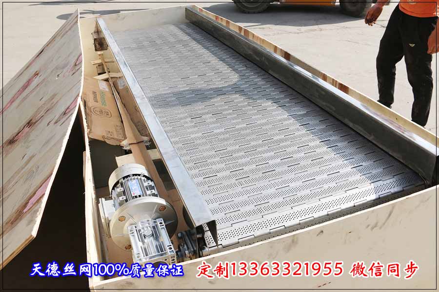 河北天德絲網制品有限公司生產銷售鏈板輸送機、金屬網帶、鏈板輸送帶、不銹鋼網帶等以及各種規格的不銹鋼輸送機械。