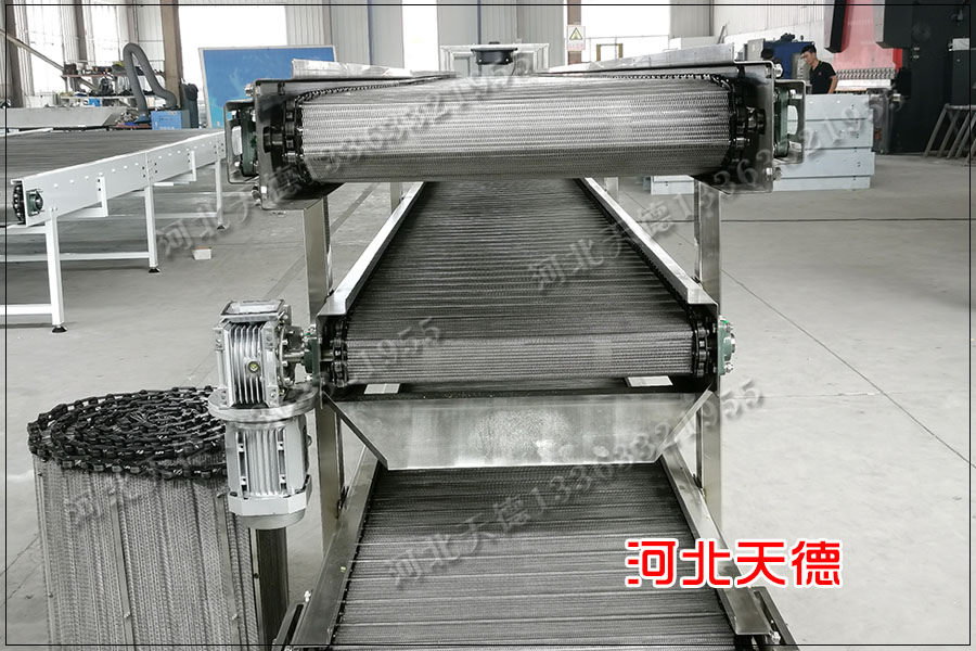 二、板鏈式輸送線:不銹鋼板鏈式輸送線是和出產線同步運轉,以鏈板輸送帶作為承載對產品進行輸送,適合承載較重的物料,同時也能夠完成物料的爬坡,對物料進行平穩輸送。