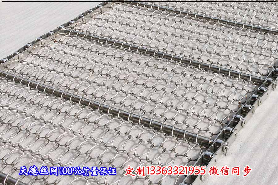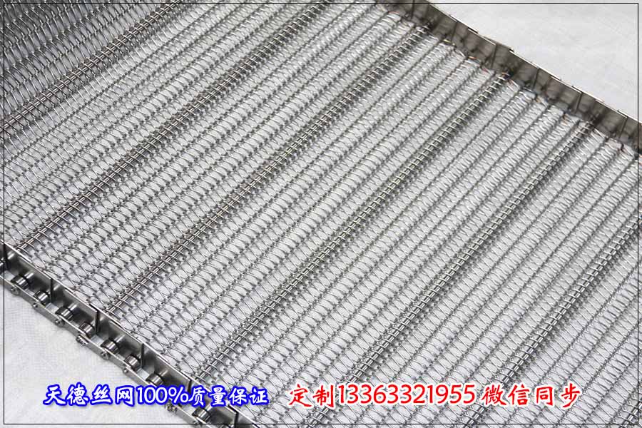 蠶豆真空油炸機輸送網帶可以定制這樣的規格:寬度和長度要根據客戶的提供加工,其它規格我們根據蠶豆的外形來定制,油炸蠶豆我們選擇鏈條式輸送網帶,絲徑:1.2mm,孔5*10mm,鏈條節距:31.75mm,桿直徑:6mm,桿間距:120mm左右一根。材質不銹鋼304材質,河北天德生產鏈條式輸送網帶,油炸機輸送帶,不銹鋼輸送帶,歡迎廣大客戶來電咨詢與訂購。