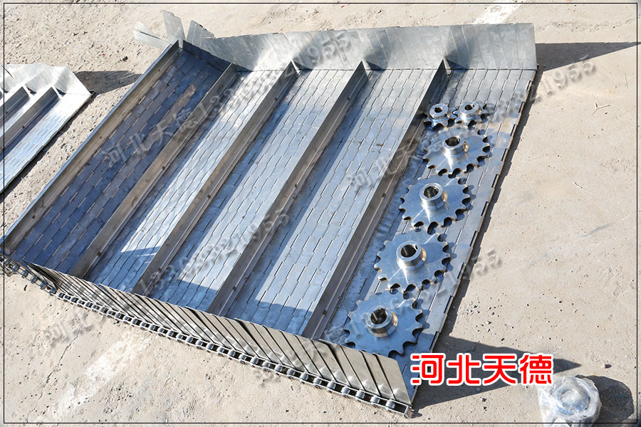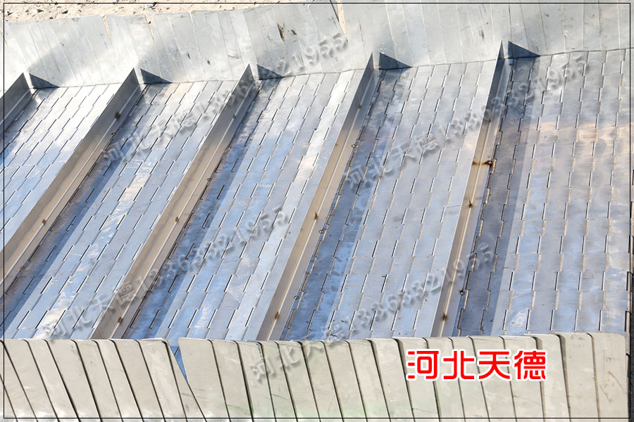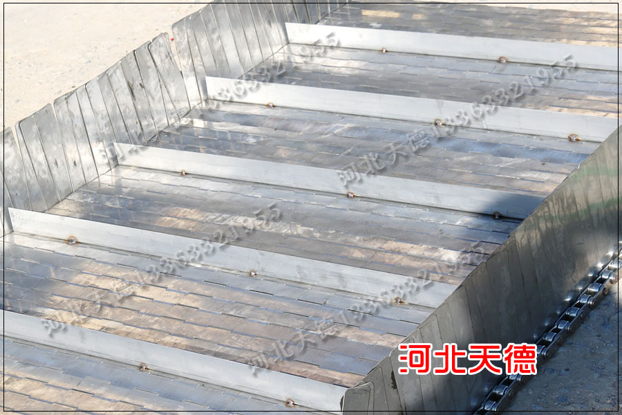 鏈板表面每隔150毫米安裝一個(gè)橫向擋板用來(lái)提升產(chǎn)品使用