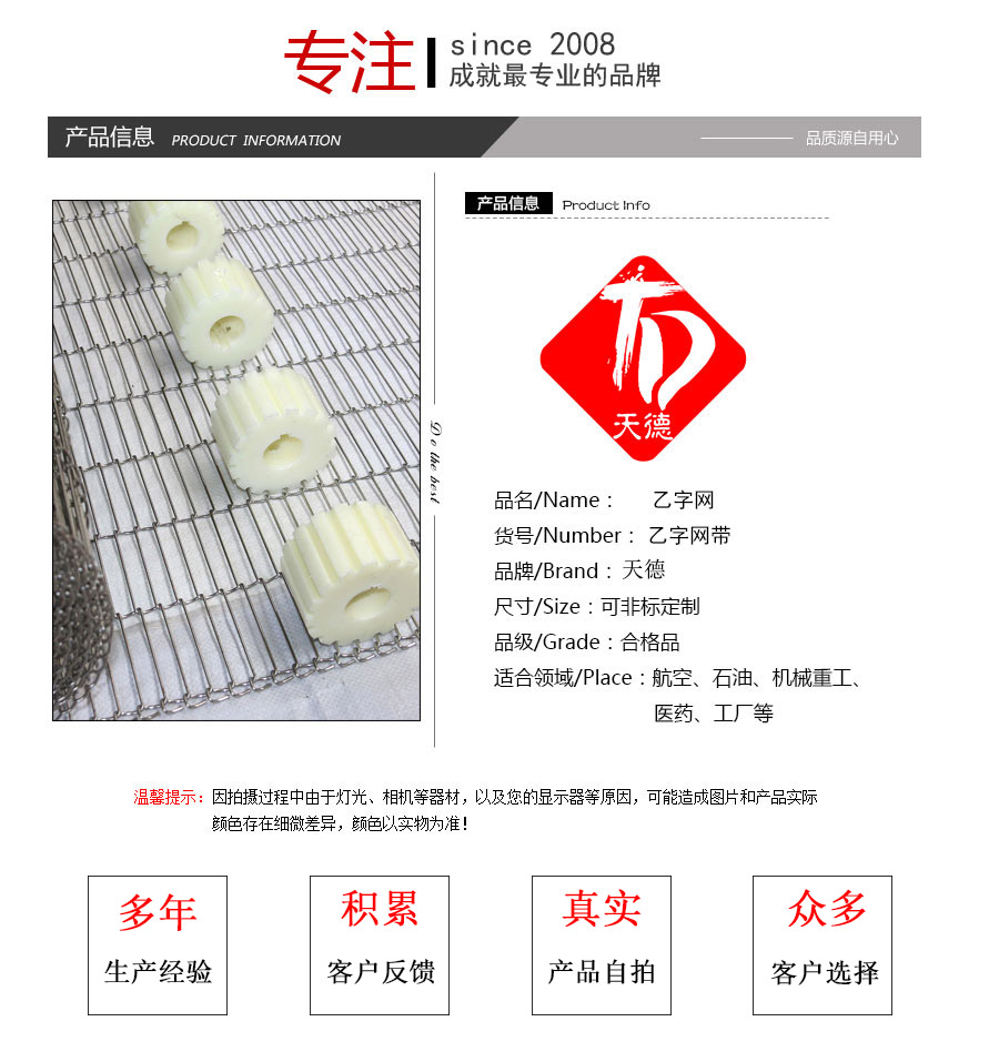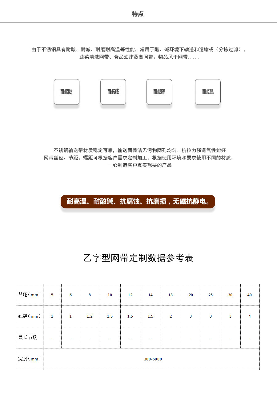 乙字型網(wǎng)帶用途:用于速凍食品,油炸食品,撒糖機,巧克力涂層與各種食品輸送降溫線。