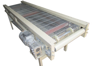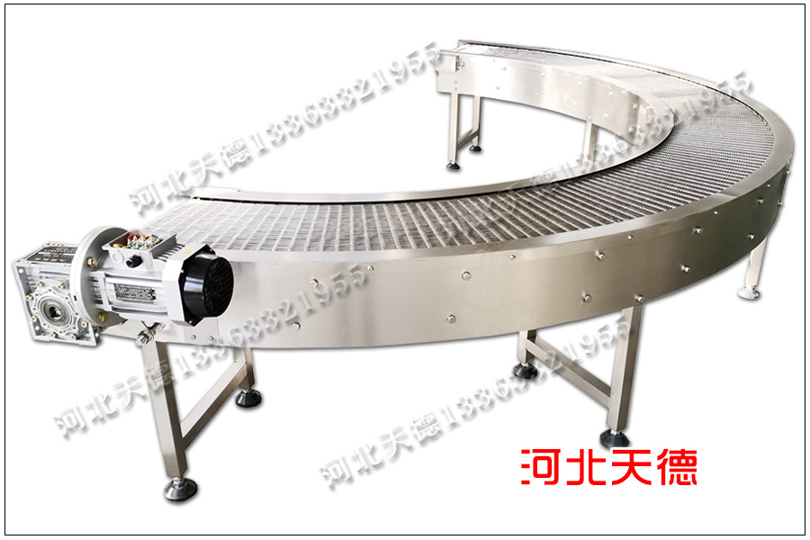 這里要介紹的這款是四川的客戶定制的轉(zhuǎn)彎網(wǎng)帶輸送機(jī),一般轉(zhuǎn)彎機(jī)采用鏈條輸送帶和鏈板輸送帶作為輸送件的比較,