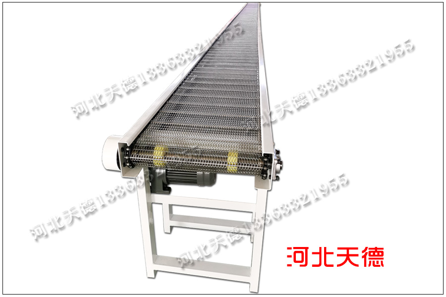 輸送線采用大滾珠鏈條式不銹鋼輸送帶來傳送物料,這種不銹鋼輸送帶是采用鋼絲編織在焊邊,鏈接上串桿與鏈條加工成的,詳細的規(guī)格尺寸是根據輸送產品的大小與重量來定制的,本臺網帶輸送機鏈條輸送帶詳細的尺寸為: